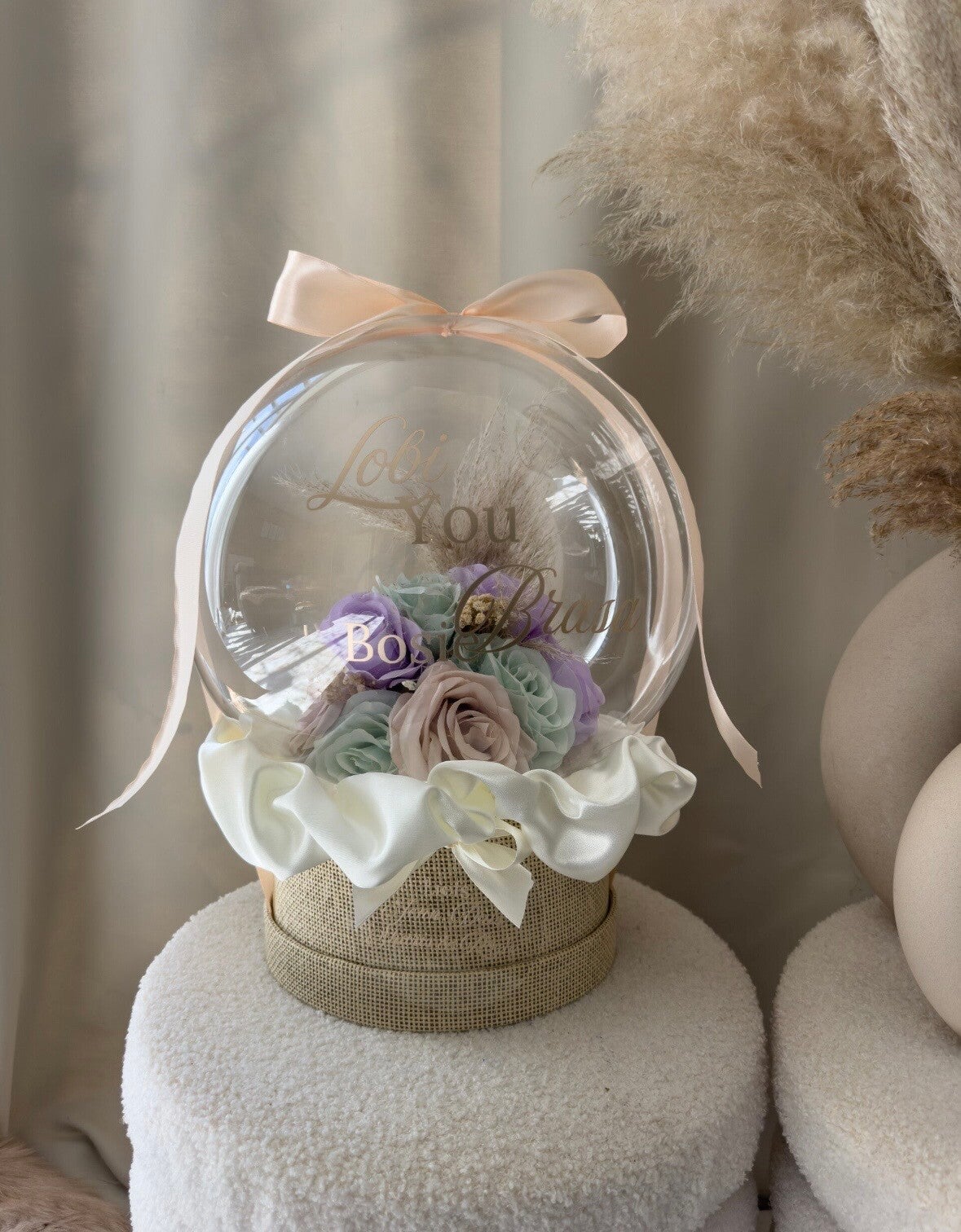 Medium flower balloon, 10 bloemen met droogbloemen + gepersonaliseerde tag.
