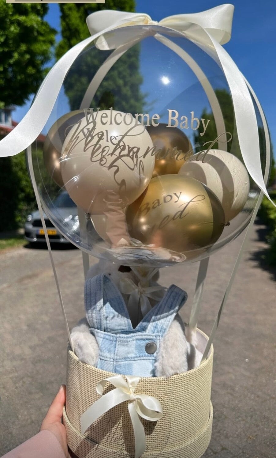 Deze komt dan IN de bobo ballon. LET OP: kan NIET als je ook kleren/schoenen/beertje/kleine ballonne /veren in de ballon hebt.