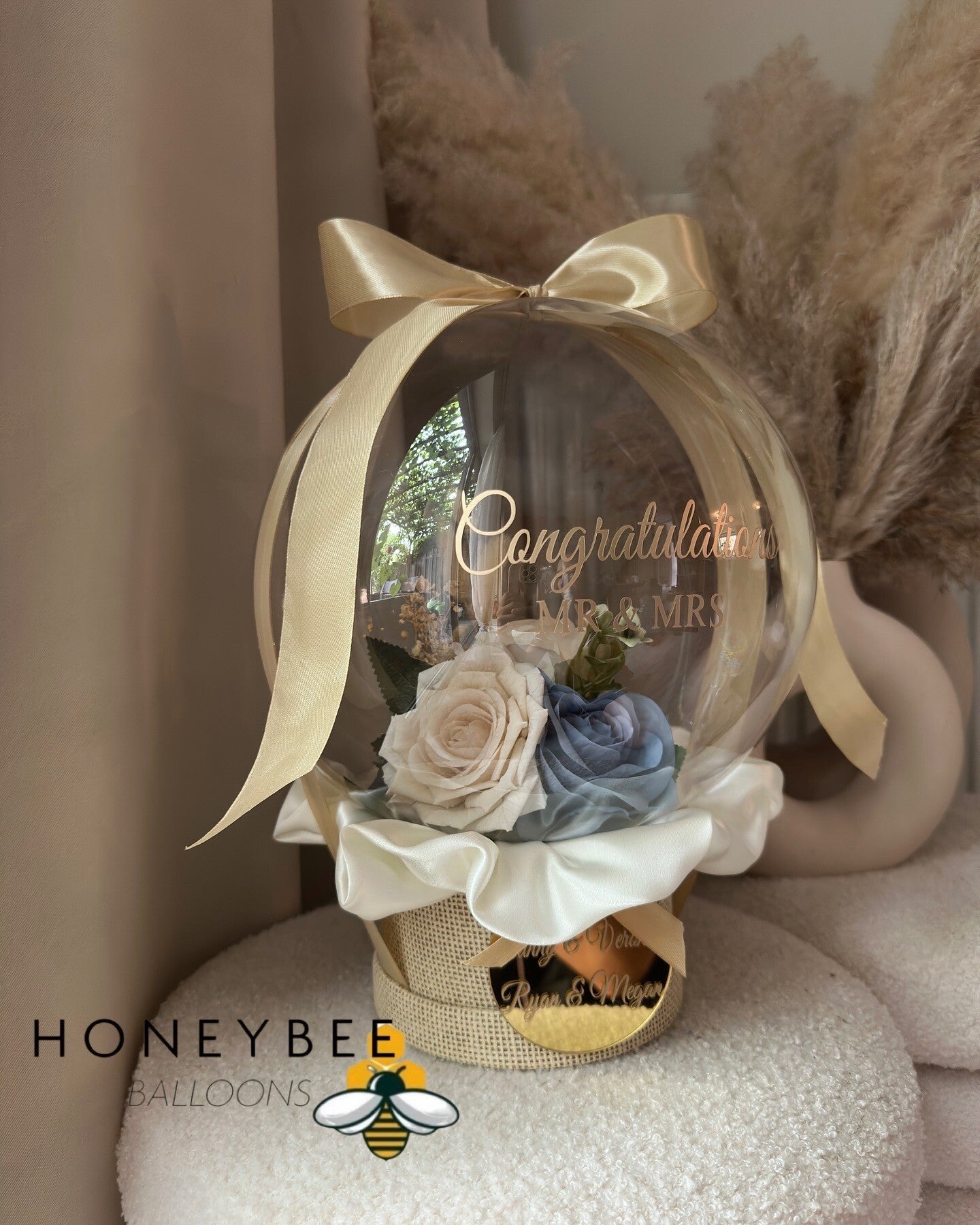 Doosje breedte 15cm, hoogte balloon + doosje 36cm.