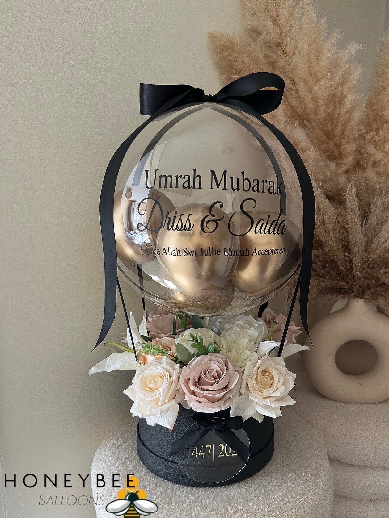 Afmetingen: 22cm breedte doosje. Hotairballon 57cm in hoogte.